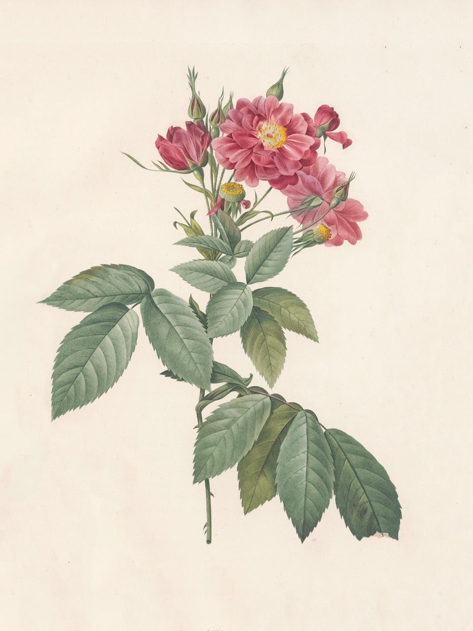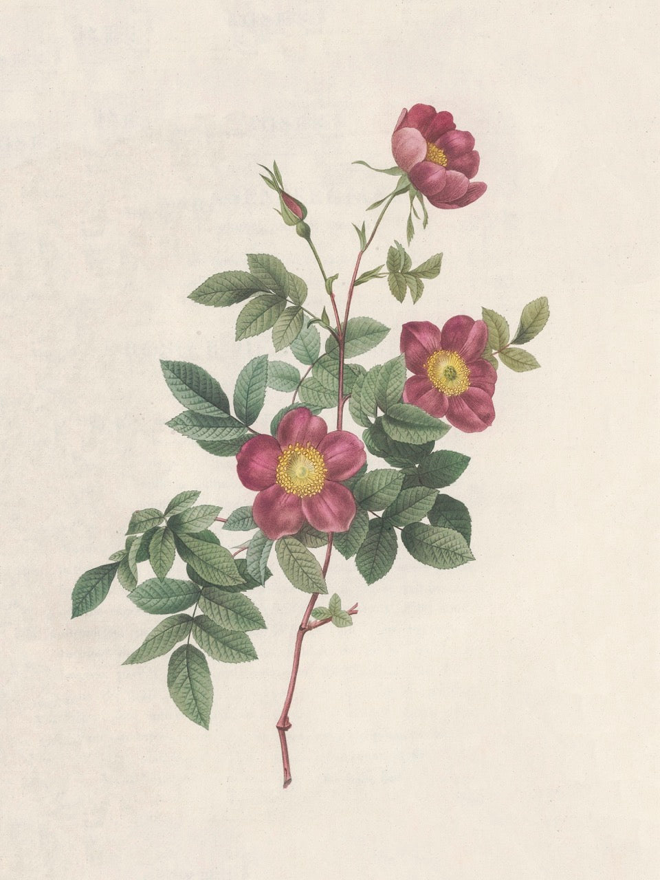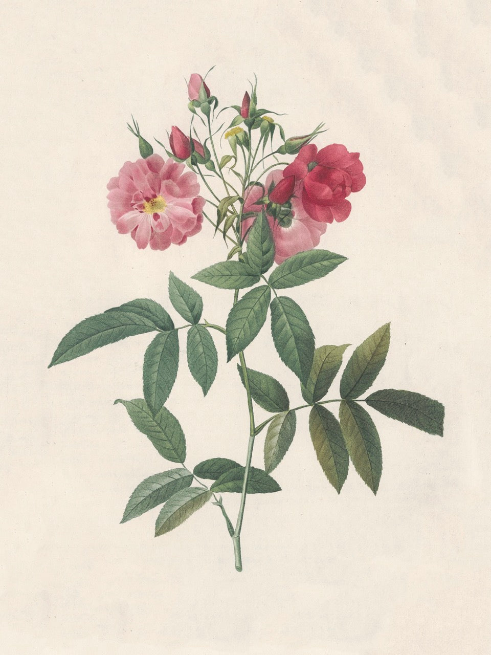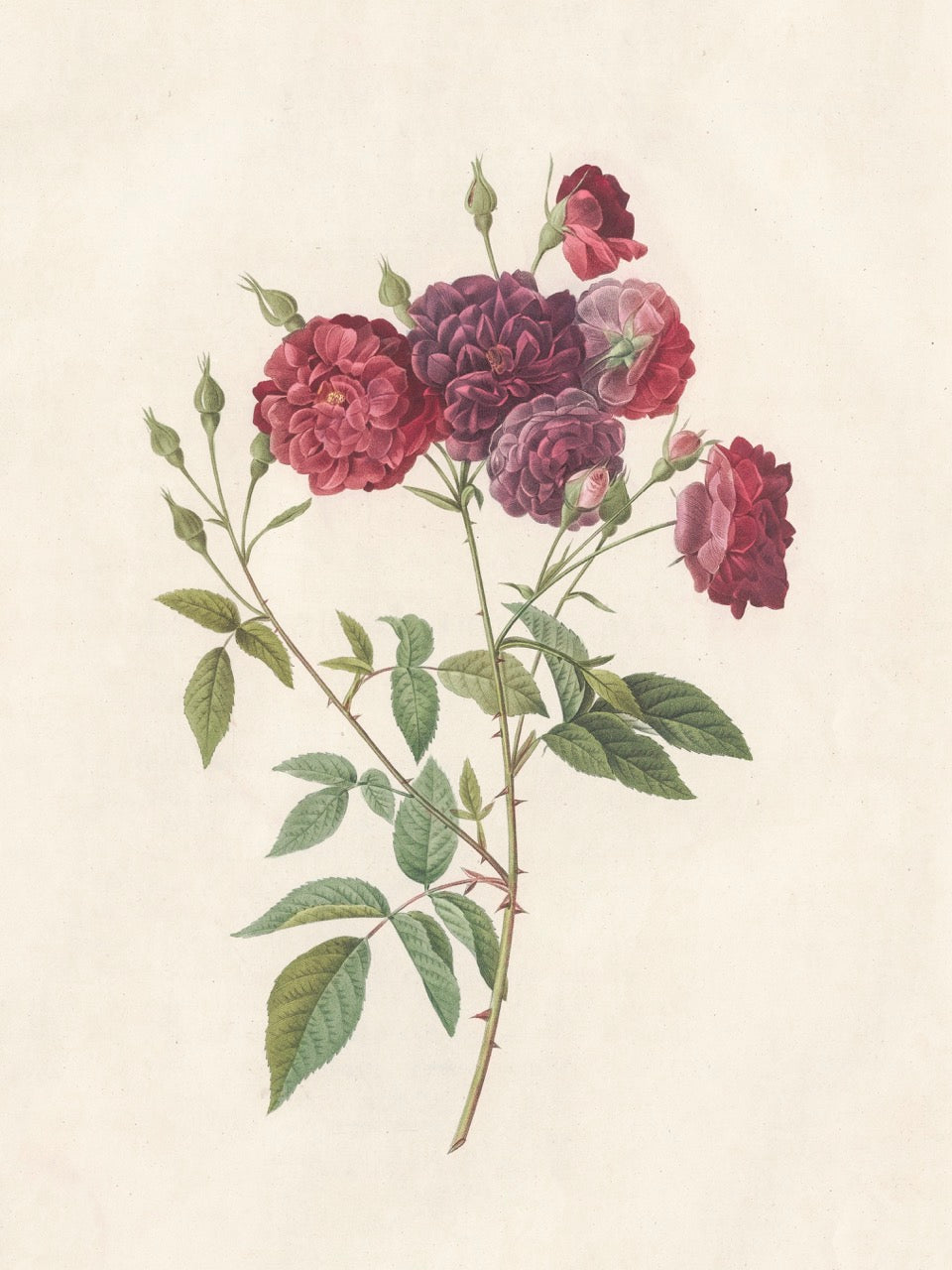 Pierre J. Redouté Floral Rose Lithograph Flower Plate 55 : Purple & Red Roses