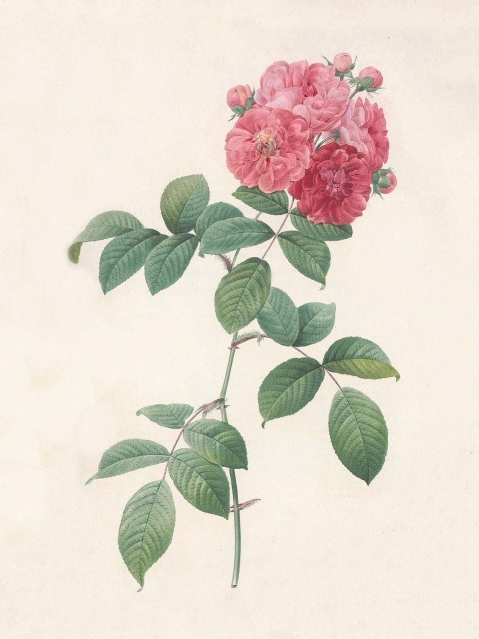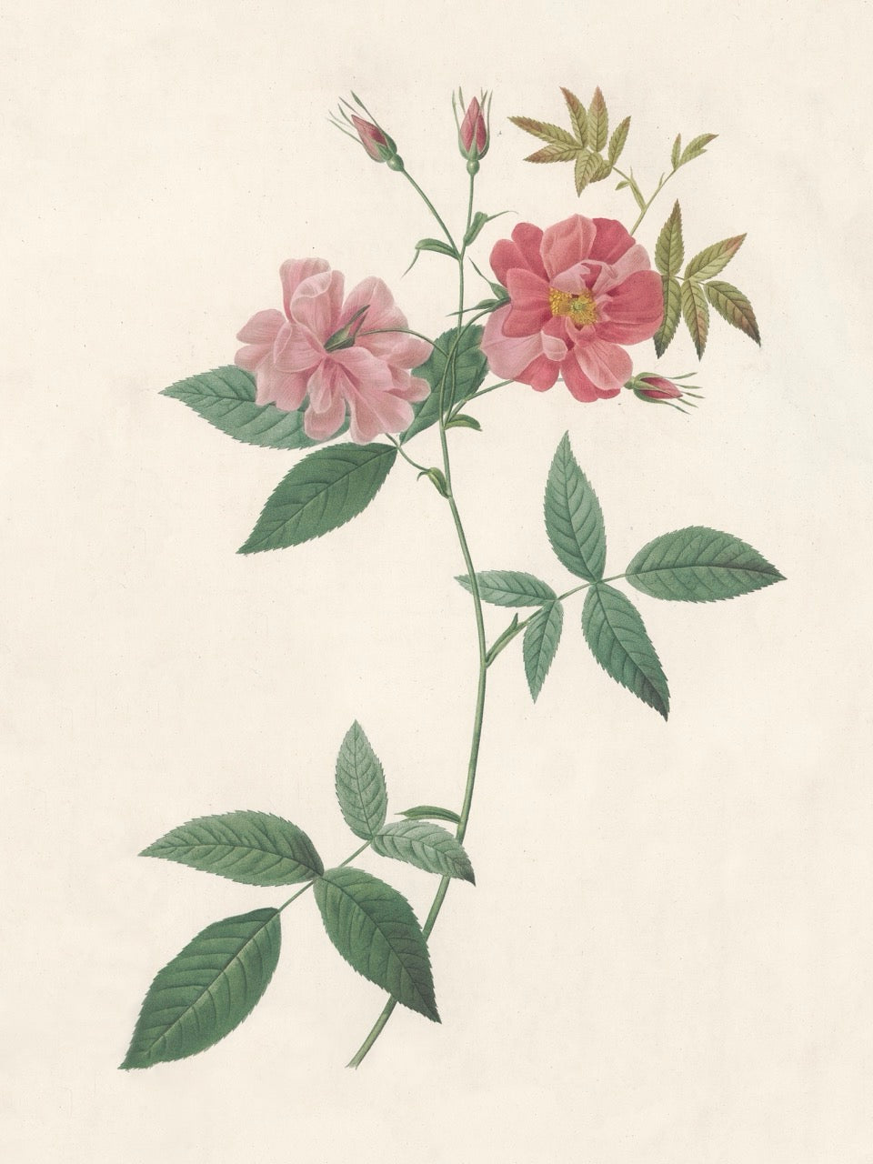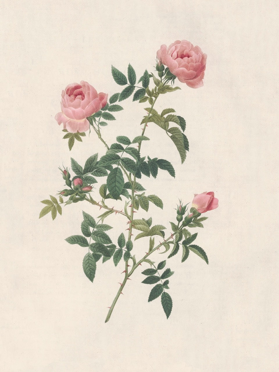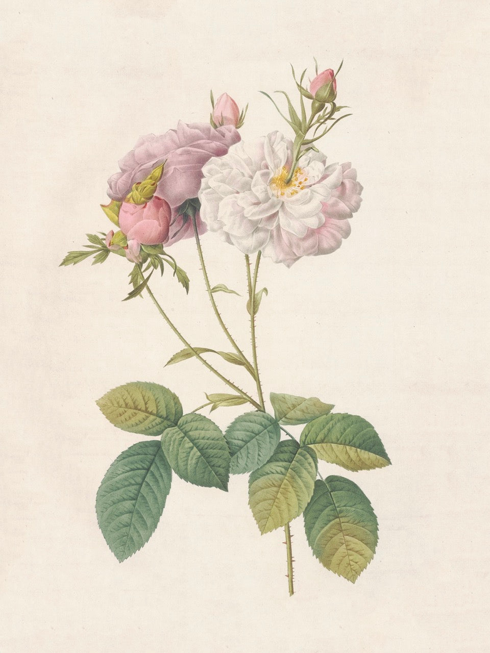 Pierre J. Redouté Floral Rose Lithograph Flower Plate 55 : Purple & Red Roses