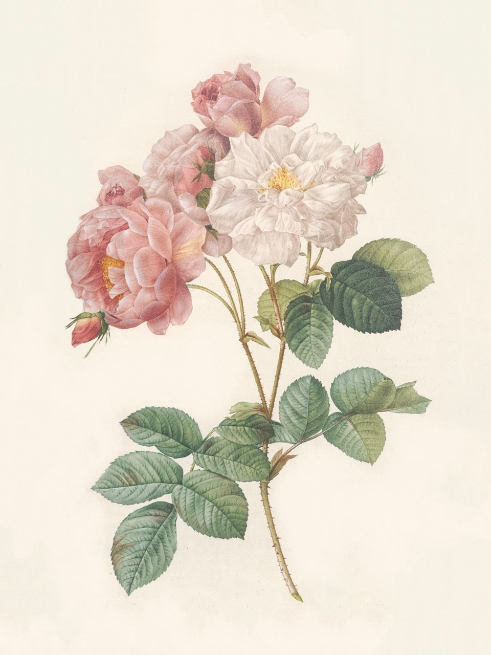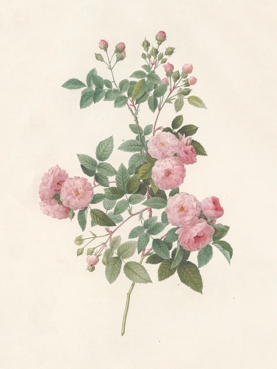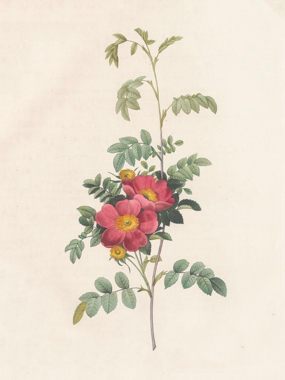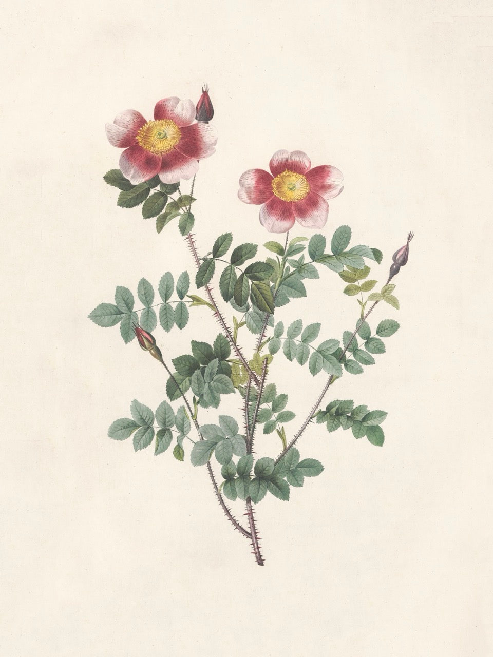 Pierre J. Redouté Floral Rose Lithograph Flower Plate 55 : Purple & Red Roses