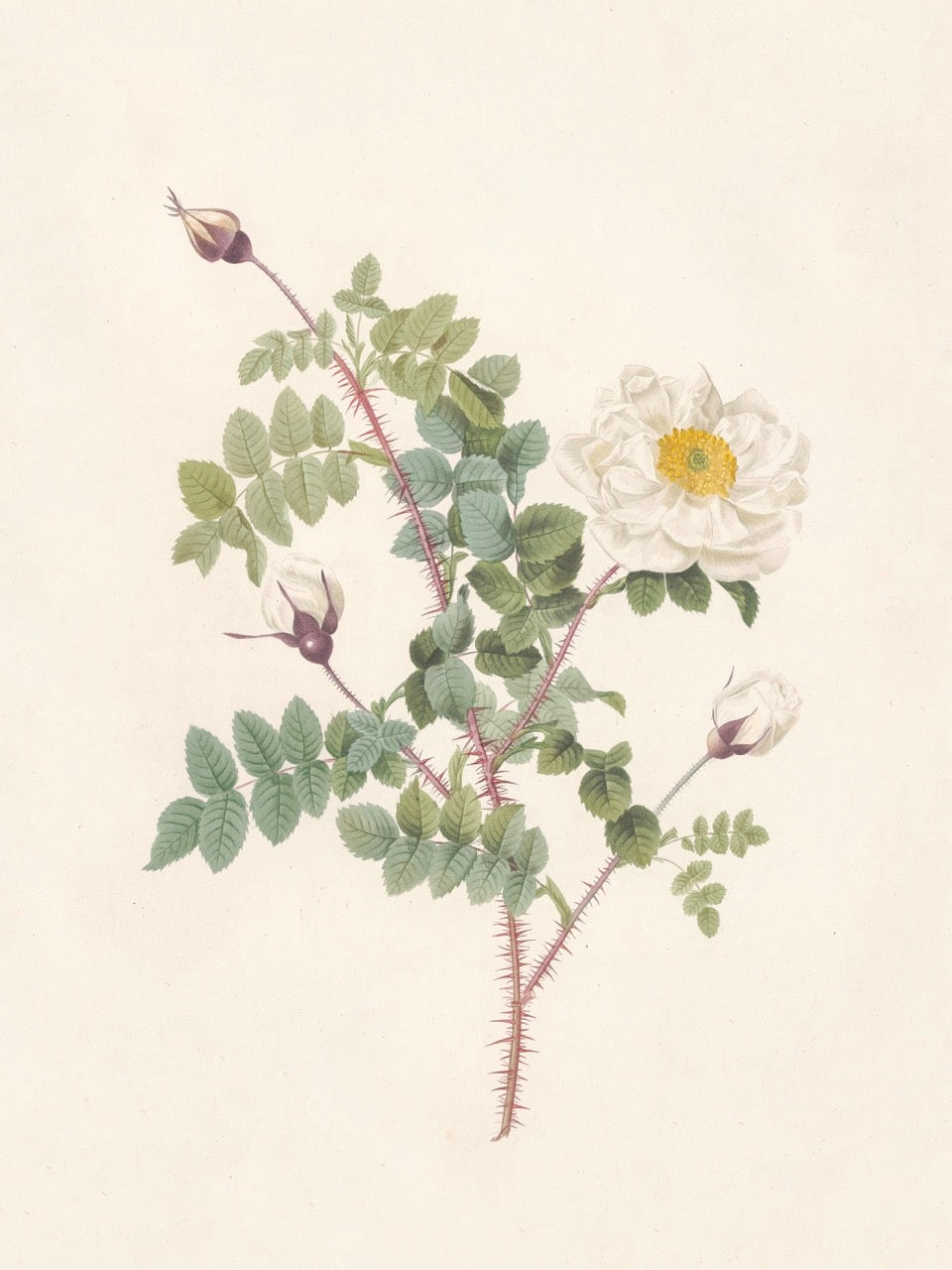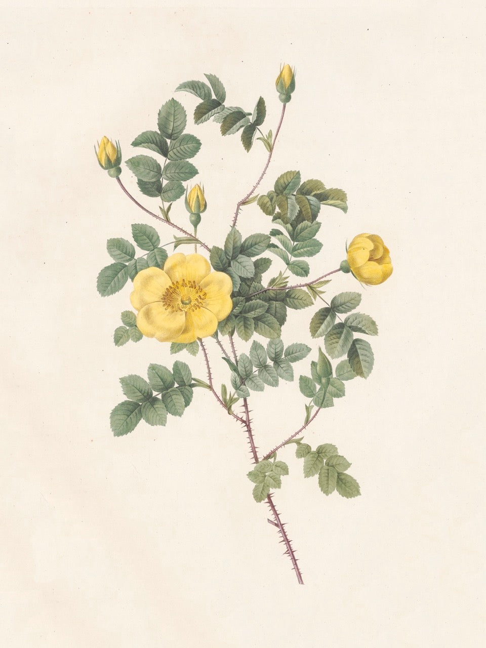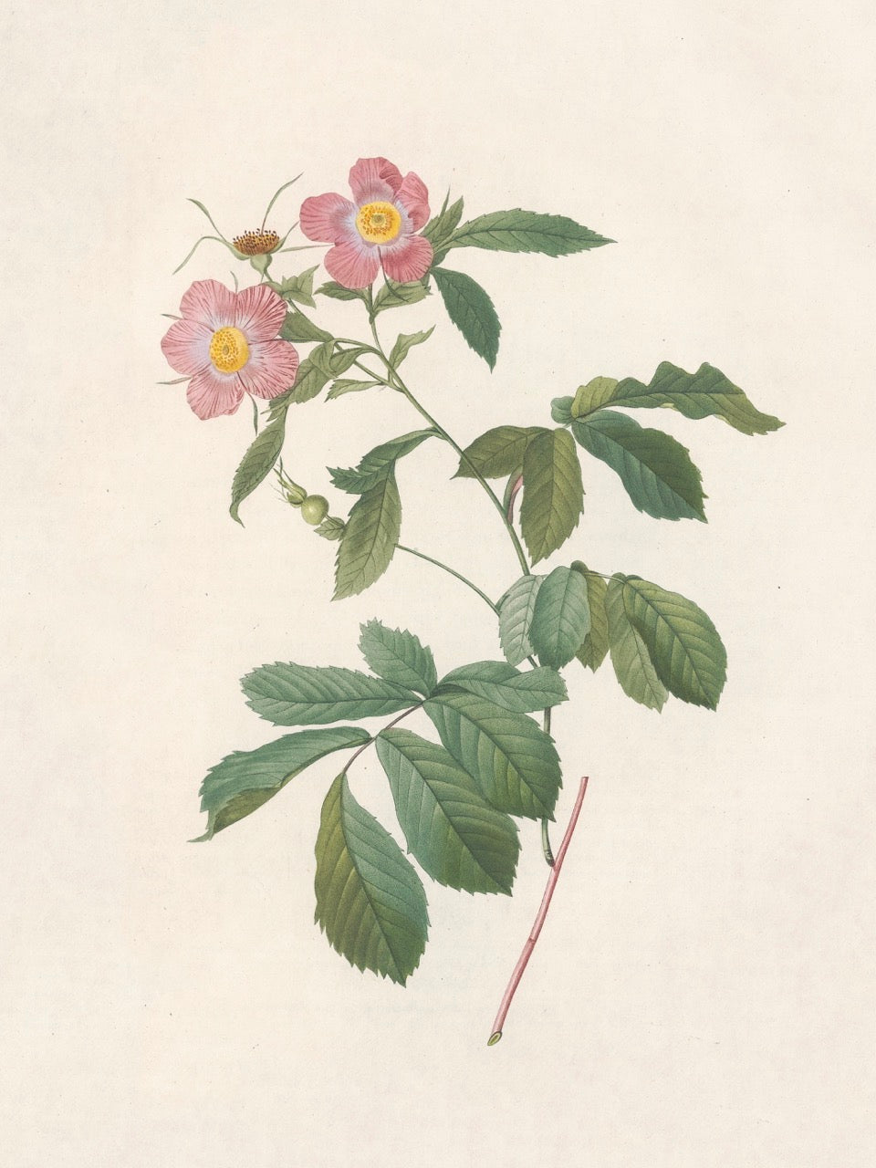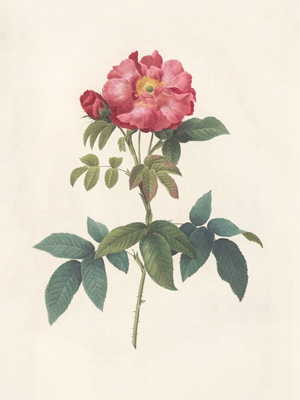Pierre J. Redouté Floral Rose Lithograph Flower Plate 55 : Purple & Red Roses