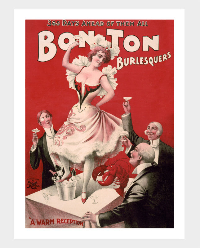 This illustration shows a Burlesque dancer atop a table, with her patrons celebrating with champagne in hand. Publication date: c1898Image size: 14.4MBPixel size: 1701 × 2109File type: TIFF, JPG, PDF...