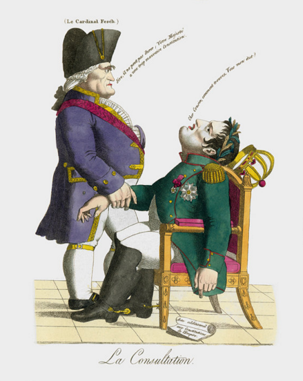 Napoleon's cousin Cardinal Cambacérès (who was opposed to the amendment) is asked how he finds his "state", (a brilliant play on words, since state in Français it means both condition and, when capitalized, the government). Cambacérès, taking Napoleon's pulse, says it can't last because he has a "very bad constitution" (another play on words).